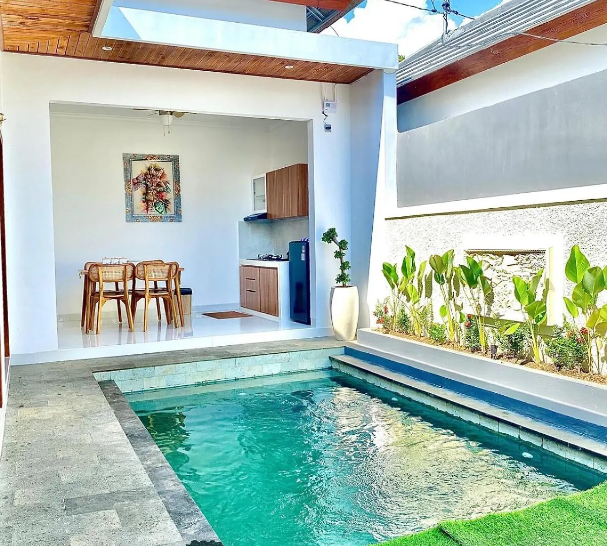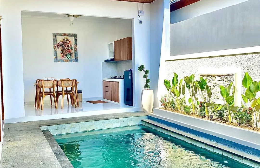 La Villa Bulan By Mentaripro Bali incluye una cocina, además de una zona de comedor para que los huéspedes puedan cocinar por sí mismos. La cocina también dispone de nevera, placa y menaje de cocina. El restaurante Heliconia Restaurant se encuentra a tan solo 1 km.